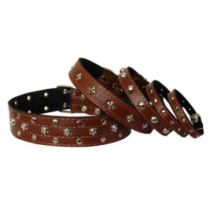 Нашийник для собак Шкіряний з прикрасами, коричневий 20-28 см