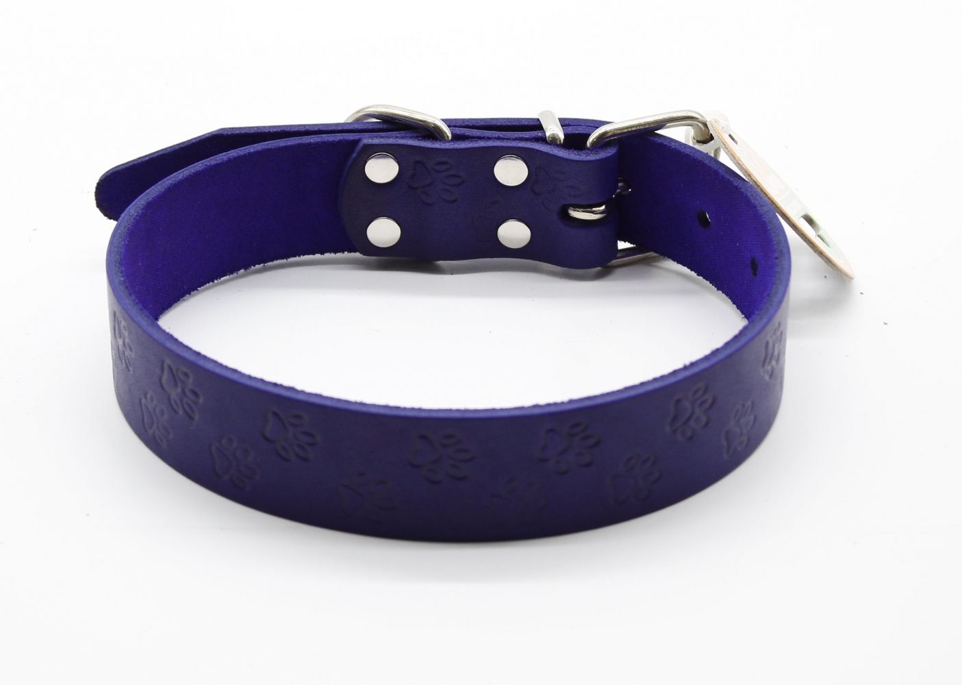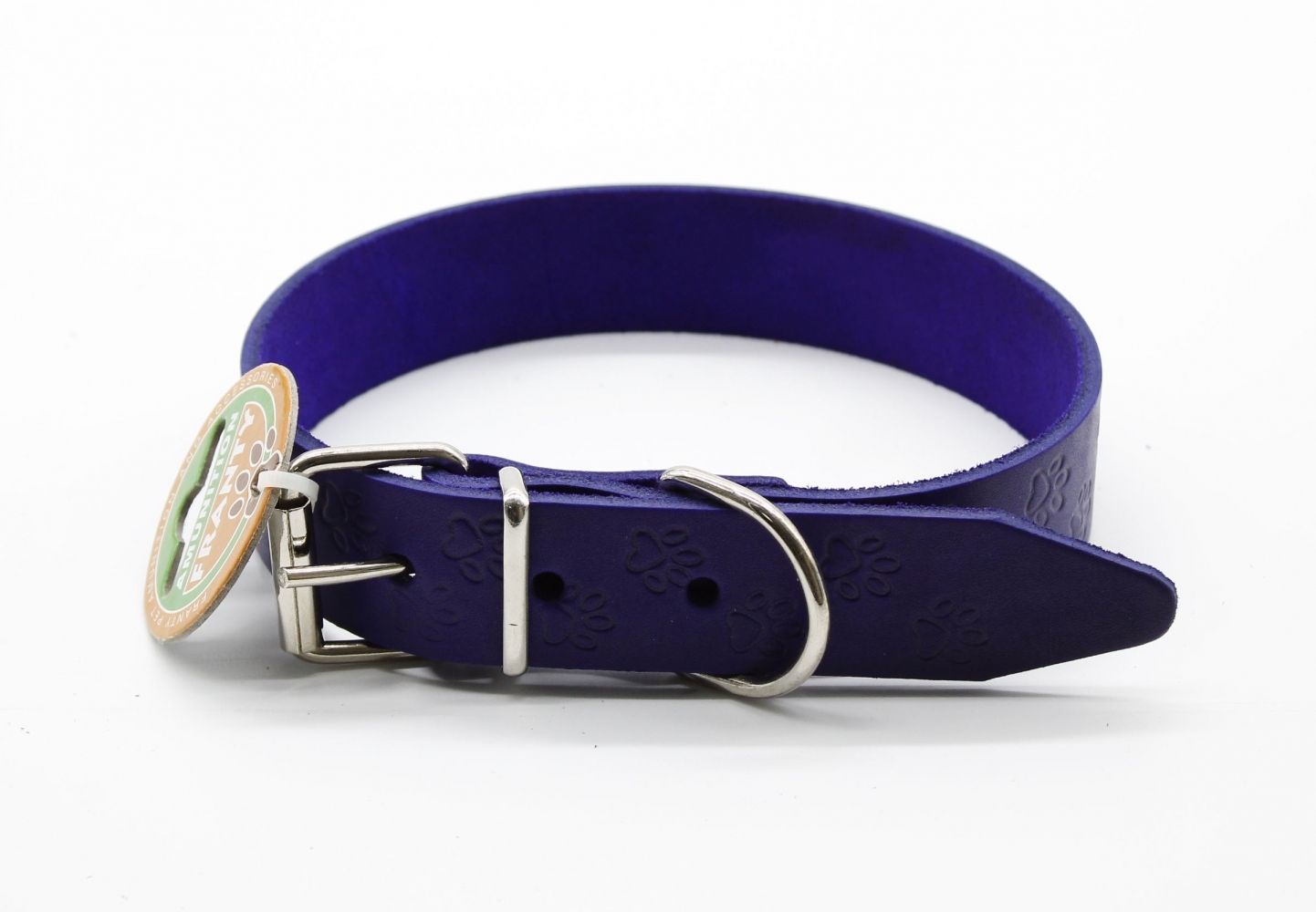 Нашийник Franty Style Paw шкіра Фіолетовий 30 мм 41-51 см.водостійка натуральна шкіраручна роботастійкий до фізичних навантаженьмяко прилягає до шиї вихованцяприкрашений тисненням у вигляді лапок і елегантною сріблястою фурнітурою.