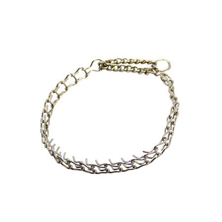 Нашийник підлозі строгий нікель 233 смВ час дресирування вихованця часто потрібно вживати більш суворі заходи, щоб собака зрозуміла, що керує ситуацією господар. У цьому випадку вам може допомогти строгий металевий нашийник. Нашийник складається з міцних ланок. Внутрішня сторона вкрита шипами, які допомагають заспокоїти собаку, створюючи для неї дискомфорт і змушуючи коритись. Підходить для короткошерстих і довгошерстих собак. Нашийник потрібно фіксувати як можна ближче до вух, тобто високо на шиї.Розмір33 смПосмотреть всі нашийники для собак