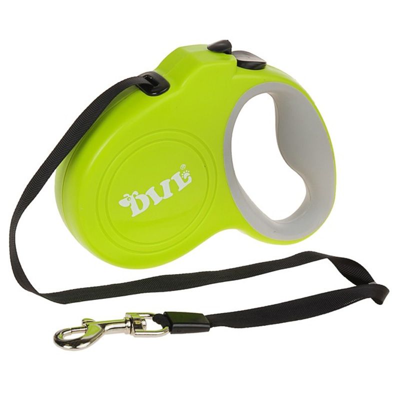 Рулетка для собак DIIL, 4м20кг, пластикова ручка з кнопкою для легкого зупинення та відпускання стрічки. Максимальне навантаження: 20 кг. Матеріал стрічки: нейлон. Максимальна довжина: 4 метри. Модель: LS174.