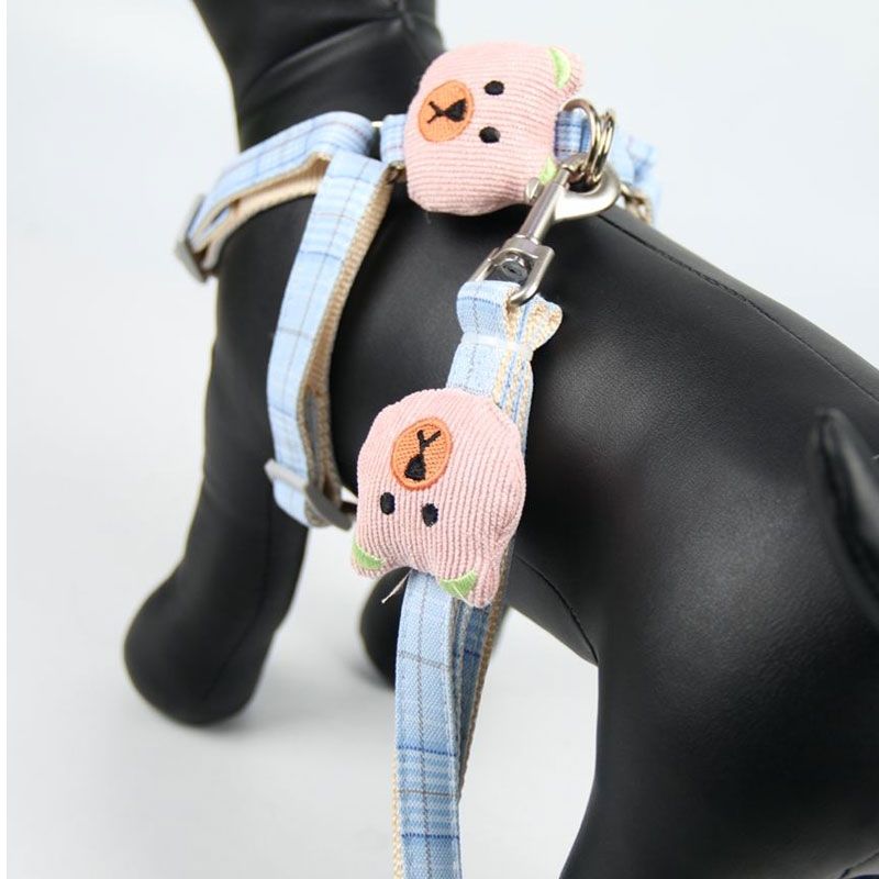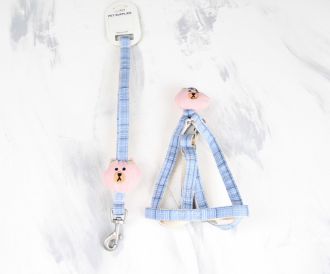 Комплект Собачки - ідеальний вибір для цуценят і дрібних собак. Блакитний колір шлеї з повідцем додає ніжності та стильності. Цей комплект виготовлений з увагою до комфорту вашого пухнастого друга, забезпечуючи безпечні та радісні прогулянки разом. Так ви зможете насолоджуватися спільними моментами та створити лише позитивні спогади про прогулянки з вашим улюбленцем.Довжина повідця 120 см