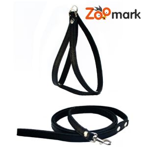 Набір шлейка човник з шкіряним повідець шкіра строчена з підкладом Чорний