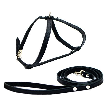 Набір шлейка вісімка з шкіряним повідцем строчений з підкладом Чорна