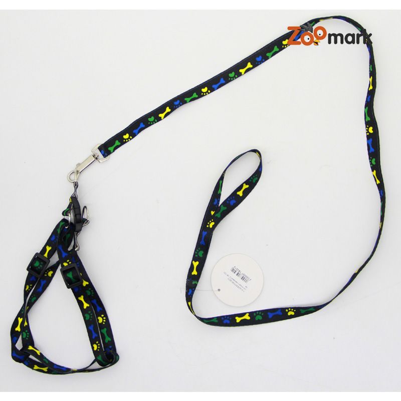 Шлея і повідець комплект 1,5 12-18105см стрічка з малюнком кісточки і лапки
