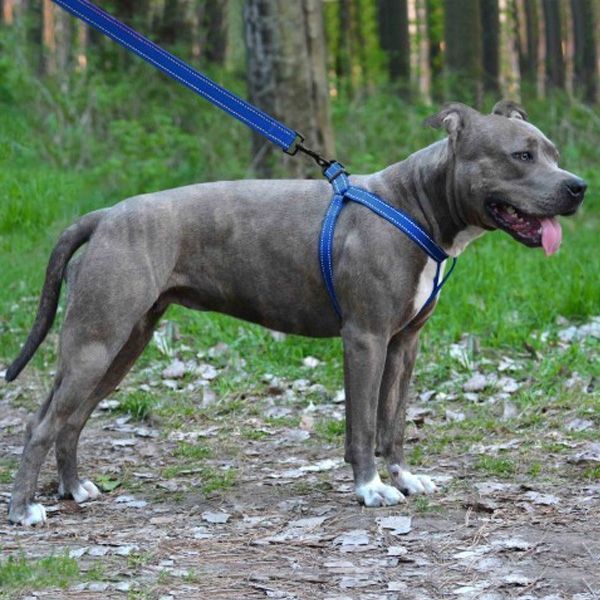 Шлея капронова світловідбиваюча синя 25мм (58-71см)