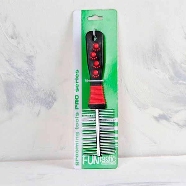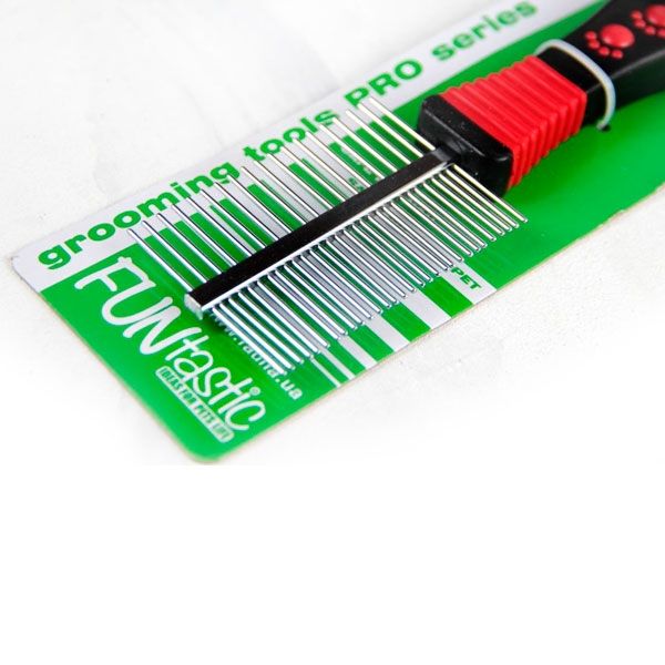 Сталевий двосторонній гребінець ідеально підходить для щоденного вичісування шерсті.Робить шерсть мякою і гладкою. Допомагає знаходити і запобігає утворенню ковтунів і місць проживання бліх і паразитів. Округлені кінчики не зашкодять шкірі Вашої тварини.Виготовлена зі сталі.Розмір: 205 см, ручка 12 см