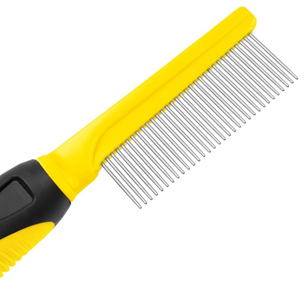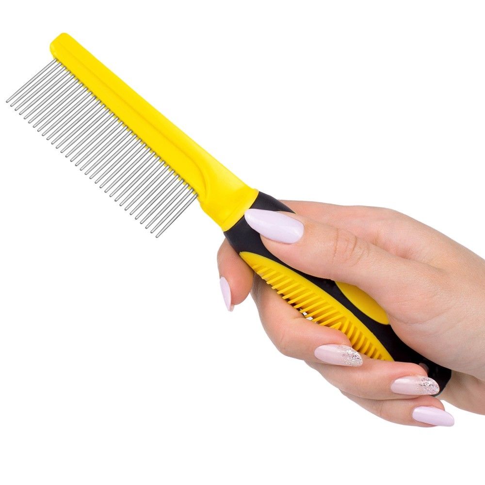 Гребінець з 32 зубцями 21Х4СМ ASK32Гребінець Bronze dog для щоденного догляду за шерстю. Металеві зуби акуратно розчісують навіть довгу заплутану шерсть, не висмикуючи волоски, а акуратно їх розчісує. З її допомогою можна розчесати шерсть, злегка заплуталася, щоб перешкоджати утворенню чаклун. Пластикова ручка з протиковзким покриттям запобігає ковзанню.