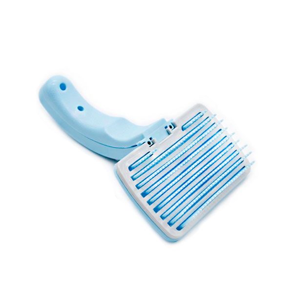 Ідеально підходить для маленьких собак і котів, від середньої до коротко шерстної з густою, жорсткою або кучерявою вовною.Щітка так розроблена, щоб проникати в підшерсток, легко доглядаючи за вовною, не травмуючи шкіру.Автоматична щітка для домашніх тварин виготовлена з високоякісного пластику, який є міцним і нетоксичним, а продукт має тривалий термін служби та нешкідливий для вовни.Зручна вигнута рукоятка.Щітка з кнопкою самоочищення та висувна пластина щітки дозволяють легко видаляти вовну.Зручна щітка видаляє підшерстя та лупу.Розмір:19х12 см, ручка 12 см, щітка 12х7 см, висота зубця 2 см