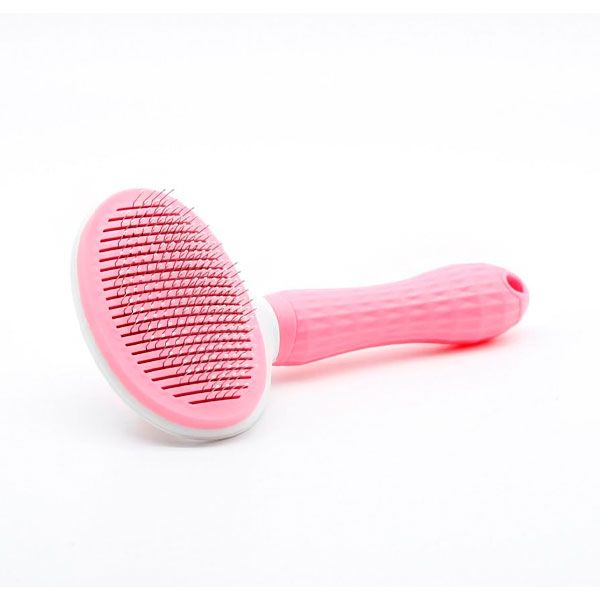 Щітка для вичісування це практичний та зручний аксесуар для регулярного догляду за вовною вашого вихованця.Вона призначена для котів і собак із середньою та довгою вовною і допомагає без особливих зусиль видалити підшерстя тварини під час линяння.Вигнуті зубчики з безпечними наконечниками ефективно видаляють відмерлі волоски, не дратуючи при цьому шкіру тварини.А система саме очищення дозволяє легко зняти вичесану шерсть із поверхні щітки.Будь-який власник собаки або кішки знає, що догляд за вовною - важлива частина турботи про чотирилапого друга.Недбале ставлення до вичісування тварини, загрожує не лише великою кількістю вовни на меблів та одязі, а й проблемами для самого вихованця.Оскільки може призвести до появи вовняних клубків у шлунку та порушення прохідності стравоходу.Тому регулярне вичісування необхідне більшості собак і кішок, і особливо важливе для довгошерстих і пухнастих порід.Легко чиститьсяРобить догляд за вовною вихованця максимально зручним та легким. На відміну від звичайних щіток, вона забезпечена функцією самоочищення, яка дозволяє без особливих зусиль зняти з неї вичесану шерсть. Для цього потрібно натиснути кнопку на тильній стороні щітки, після чого верхня частина підніметься і залишиться лише видалити все зібране простим рухом.Делікатне вичісуванняЩітка має пружні при натисканні зубці з високоміцної нержавіючої сталі, які зігнуті під кутом 60 градусів. Вони чіпляють мертві волоски і акуратно витягують їх на поверхню. Крім того, кожен зубчик прикритий захисним наконечником, який допомагає уникнути пошкодження шкіри тварини та робить процедуру вичісування безболісною. І навіть трохи приємною, оскільки щітка має легкий масажний ефект.Ергономічна ручкаКонструкція щітки враховує як потреби тварини, а й комфорт господарів. Ручка покрита ковзною гумовою оболонкою, що дозволяє надійно утримувати аксесуар у руці під час використання. А кнопка для очищення розташована таким чином, щоб її можна було легко дістати із будь-якого положення.Особливості:Пружні, захищені на кінцях зубці, вигнуті під кутом 60Функція саме очищенняКомфортно вичісує підшерстя, не приносячи больових відчуттівМає додатковий масажний ефект та стимулює кровообіг.Зручна гумова ручкаПідходить для котів та собак з чутливою шкірою