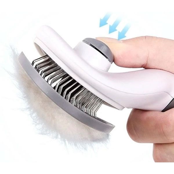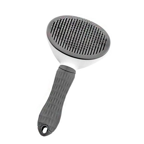 Щітка для вичісування це практичний та зручний аксесуар для регулярного догляду за вовною вашого вихованця.Вона призначена для котів і собак із середньою та довгою вовною і допомагає без особливих зусиль видалити підшерстя тварини під час линяння.Вигнуті зубчики з безпечними наконечниками ефективно видаляють відмерлі волоски, не дратуючи при цьому шкіру тварини.А система саме очищення дозволяє легко зняти вичесану шерсть із поверхні щітки.Будь-який власник собаки або кішки знає, що догляд за вовною - важлива частина турботи про чотирилапого друга.Недбале ставлення до вичісування тварини, загрожує не лише великою кількістю вовни на меблів та одязі, а й проблемами для самого вихованця.Оскільки може призвести до появи вовняних клубків у шлунку та порушення прохідності стравоходу.Тому регулярне вичісування необхідне більшості собак і кішок, і особливо важливе для довгошерстих і пухнастих порід.Легко чиститьсяРобить догляд за вовною вихованця максимально зручним та легким. На відміну від звичайних щіток, вона забезпечена функцією самоочищення, яка дозволяє без особливих зусиль зняти з неї вичесану шерсть. Для цього потрібно натиснути кнопку на тильній стороні щітки, після чого верхня частина підніметься і залишиться лише видалити все зібране простим рухом.Делікатне вичісуванняЩітка має пружні при натисканні зубці з високоміцної нержавіючої сталі, які зігнуті під кутом 60 градусів. Вони чіпляють мертві волоски і акуратно витягують їх на поверхню. Крім того, кожен зубчик прикритий захисним наконечником, який допомагає уникнути пошкодження шкіри тварини та робить процедуру вичісування безболісною. І навіть трохи приємною, оскільки щітка має легкий масажний ефект.Ергономічна ручкаКонструкція щітки враховує як потреби тварини, а й комфорт господарів. Ручка покрита ковзною гумовою оболонкою, що дозволяє надійно утримувати аксесуар у руці під час використання. А кнопка для очищення розташована таким чином, щоб її можна було легко дістати із будь-якого положення.Особливості:Пружні, захищені на кінцях зубці, вигнуті під кутом 60Функція саме очищенняКомфортно вичісує підшерстя, не приносячи больових відчуттівМає додатковий масажний ефект та стимулює кровообіг.Зручна гумова ручкаПідходить для котів та собак з чутливою шкірою