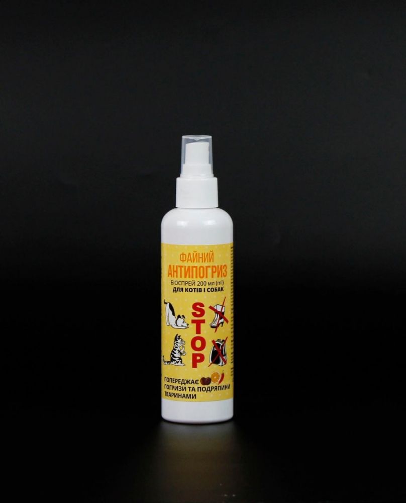 Рідина для захисту від погризів і подряпин тваринами різних предметів побуту. Спрей використовують з метою попередження погризів меблів килимів, взуття, електричних проводів та інших предметів побуту домашніми тваринами.Спосіб використанняСтруснути флакон, кількома натисками на розпилювач розподілити вміст на відстані 20-30 см від поверхні, що зацікавила тварину. Рекомендовано обробляти предмети і поверхні засобом 1-2 рази на день протягом 2 - 3 днів. Не слід писати на тварин, корм, тарілки і підстилки. Повторювати обробку гризуть місць тварини, в міру необхідності, бажано щотижня.