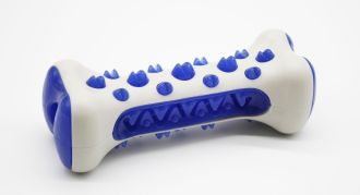 - Ефективна турбота про зуби та порожнини рота: Гумова кісточка спеціально розроблена для покращення здоровя зубів собак. Матеріал з нейлону та термопластика забезпечує гарне тертя та масаж ясен, допомагаючи запобігти утворенню зубного нальоту та зубного каменю.- Пристосована до розміру породи: Підходить для дрібних, середніх та великих порід собак, що робить іграшку універсальною та доступною для більшості домашніх вихованців.- Стимуляція у дрібних, середніх та великих собак: Завдяки розміру та конструкції ця іграшка стимулює жувальні мязи собак різних розмірів, допомагаючи їм розвивати силу щелеп та зменшуючи стрес.- Довговічність та безпека матеріалів: Використання нейлону та термопластику забезпечує довгий термін служби іграшки, а також забезпечує її безпеку для зубів та здоровя вихованця.