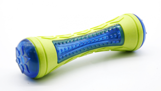Іграшка гантель з рельєфною поверхнею для собак. Довжина 20 см, світиться і пищить від стискання. Іграшка міцна на укус, призначена для ігор, заохочень, навчання, дресирування собак. У процесі гри очищає зуби від нальоту і масажує ясна. Використання такої іграшки позитивно позначиться на здоровї домашнього улюбленця.Переваги:Рельєфна поверхня масажує і зміцнює ясна.Очищає зуби від зубного каменю і сприяє їх здоровому росту.Допоможе при прорізуванні зубів, позбавить від свербіння.Задовольняє потребу щось кусати і жувати, захищаючи від псування домашні меблі.Міцна і еластична, витримує зуби собаки.При стисканні пищить і світиться.Виготовлена з безпечної і нетоксичної гуми (TPR).