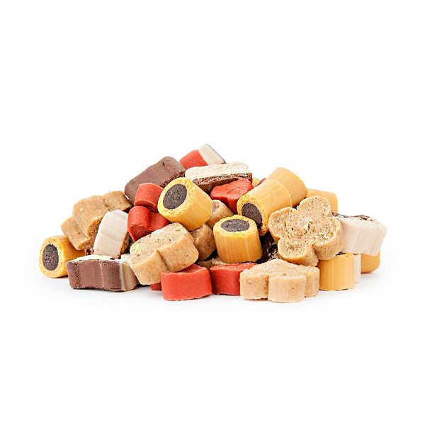 Ласощі, які ідеально підходять для дресирування будь-якої собаки.Вони неодмінно привернуть увагу вашої собаки своїм смаком і різноманітністю форм.Унікальне поєднання курки, баранини та лосося стане ідеальним ласощами для вашого вихованця.І поки він насолоджується багатством і різноманітністю смаків , ви можете бути спокійні за його вагу - наші делікатеси містять лише 5 жируЗавдяки низькому вмісту жиру та доданим мінералам, дресирувальники стануть чудовим доповненням до раціону будь-якої собаки .ідеальна винагорода - допоможіть своїй собаці навчитися хорошій поведінцілегкий перекус між прийомами їжі - для собак, які не можуть дочекатися обідувишуканий смак - поєднання різноманітних сортів мяса та рибилегко жувати - ви також можете давати його літнім собакам, у яких зуби не настільки міцніДавати тваринам різноманітну їжу є для них здоровою та приємною зміною.У той же час він навчає вашого вихованця, що зміна смаків приємна, що полегшить вам введення нових продуктів і інгредієнтів у раціон вашого вихованця.Тому ми рекомендуємо використовувати наші ласощі особливо власникам вибагливих собак .Ласощі допомагають побудувати глибший звязок між собакою та власником.Завдяки дресируванням з вихованцем легше подружитися, а смачна винагорода поглиблює у вихованця асоціацію присутності господаря із задоволенням.Розмір -2 см.