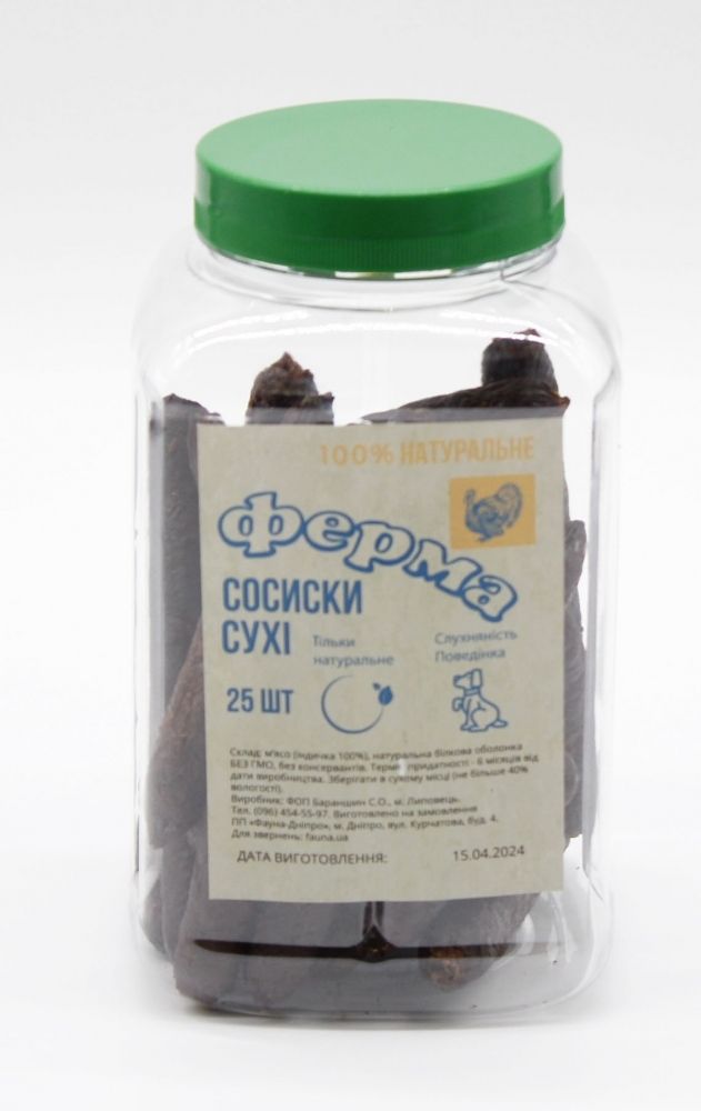 Сосиски сухі індичка100 12см 25штуп