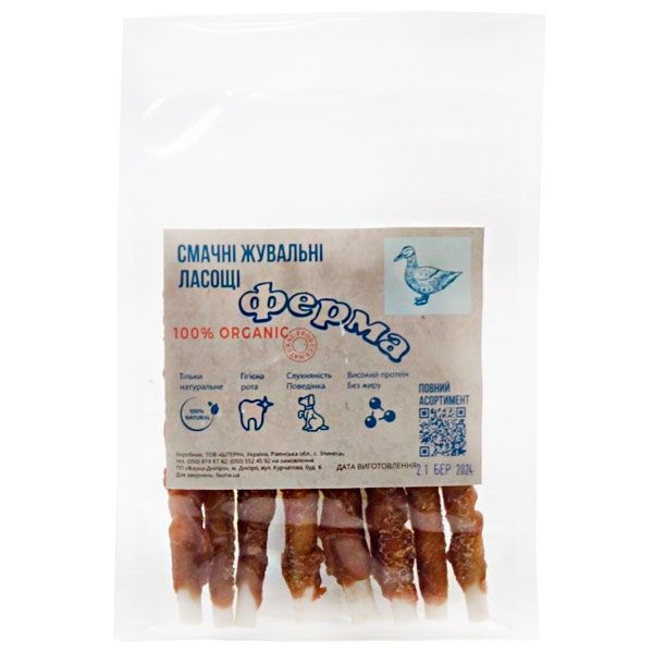 Ласощі для собак - смачні ласощі у вигляді паличок дають змогу задовольнити жувальний інстинкт собаки.Процес жування допомагає очистити зуби від нальоту, розвиває мязи щелепи та приносить величезне задоволення улюбленцю.Створений за спеціально розробленою рецептурою та технологією, що зберігає в готовому продукті всі корисні речовини, присутні у свіжому мясі.Смачні ласощі у вигляді паличок дають змогу задовольнити жувальний інстинкт собаки.Процес жування допомагає очистити зуби від нальоту, розвиває мязи щелепи та приносить величезне задоволення улюбленцю.Створений за спеціально розробленою рецептурою та технологією, що зберігає в готовому продукті всі корисні речовини, присутні у свіжому мясі.Поради щодо годування:давати 3 - 6 шт. на день залежно від розміру тварин, як заохочення чи добавку до основного раціону.