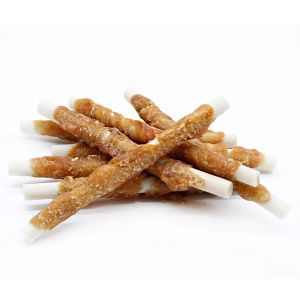 Натуральні жувальні ласощі у вигляді загорнутих у куряче філе яловичих трубочок для собак.Прекрасний засіб для заохочення, який принесе Вашому вихованцю масу задоволення та користні.Є дієтичним частуванням, завдяки чому ласощі легко перетравлюються і добре засвоюються.На 95,5 виготовлено з курячої грудки та яловичої шкіри - чудових джерел необхідних поживних речовин, таких як білок, цинк, магній, калій та вітаміни групи ВДопомагає підтримувати здоровя зубів вихованця у хорошому стані, у процесі жування усуває зубний наліт та масажує яснаМістить 2 жиру, підходить як легкий перекус для собак, що дотримуються низькокалорійної дієтиВиготовлено з натуральних інгредієнтів, не містить штучних барвників, ароматизаторів та підсилювачів смаку