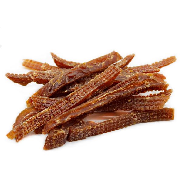 Ласощі для собак - мякі тоненькі сушені смужки з качки мяса.Ласощі містять високий відсоток якісного білка та низький вміст жиру.Вони чудово доповнять щоденний раціон вашого собаки та ідеально підійдуть як заохочення в процесі ігор, навчання та дресирування.Це корисне та смачне частування, що дозволяє побалувати улюбленця між основними прийманнями їжі або заохотити його за зразкову поведінку.Завдяки своїй щільній структурі дають змогу задовольнити жувальний інстинкт собаки.Створено за спеціально розробленою рецептурою та технологією, що зберігає в готовому продукті всі корисні речовини, присутні у свіжому мясі.Поради щодо годування:не більше 10 від добового раціону собак.Давати ласощі тільки кімнатної температури.Тварина повинна мати постійний доступ до свіжої питної води.