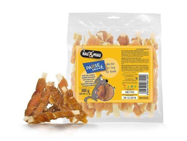 Ароматне і дуже смачне ласощі в видерибних смужок, загорнутих в мяку курку.Делікатес задовольняє природну потребу собаки в жуванні.Це допомагає в підтримці гігієни порожнини ртавашего вихованця.Жевательнаяпалочкачистит зуби і зміцнює ясна.Може бути використаний в якості нагороди.Рекомендоване годування між прийомами їжі.Необхідно забезпечити доступ до прісної води.Склад:куряче мясо 35треска 64сахарАналитические інгредієнти:сирий білок хв. 50маслаи жири макс. 2сирое волокно макс. 1зольностьмакс.1влажность макс. 23Упаковка: 500 г