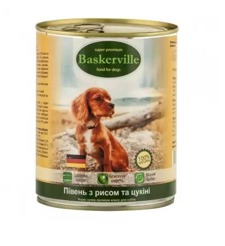 Baskerville півень Рис цукіні консерви для собак 800 гр