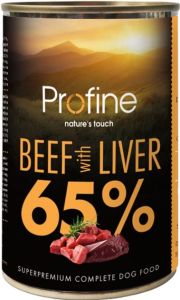 С полнорационним влажним кормом супер-премиум классаProfine 65 Beef with Liverсобака получает сбалансированную диету для здоровья, активности и хорошего настроения.Корм имеет беззерновую рецептуру и високое содержание мяса 65.Главний ингредиент говядина. Это мясо имеет високую питательную ценность и содержит большое количество белка. Говядина имеет низкое содержание жира и считается одним из наименее аллергенних видов мяса.Состав:говяжье мясо и потроха 60, печень 5, мука гороховая 2, лигноцеллюлоза 1.Аналитические компоненти:сирой белок 10, содержание жира 9, сирая зола 2.5, сирая клетчатка 0.5, влага 78, кальций 0.2, фосфор 0.3, натрий 0.25.Пищевие добавки на 1 кг:витамин D3 (3a671) 200 МЕ, витамин Е (3a700) 100 мг, цинк (3b606) 15 мг, марганец (3b504) 3 мг, йод (3b201) 0.75 мг, медь (3b406) мг, железо (3b106) 10 мг.Энергетическая ценность:1 137 ккалкг.