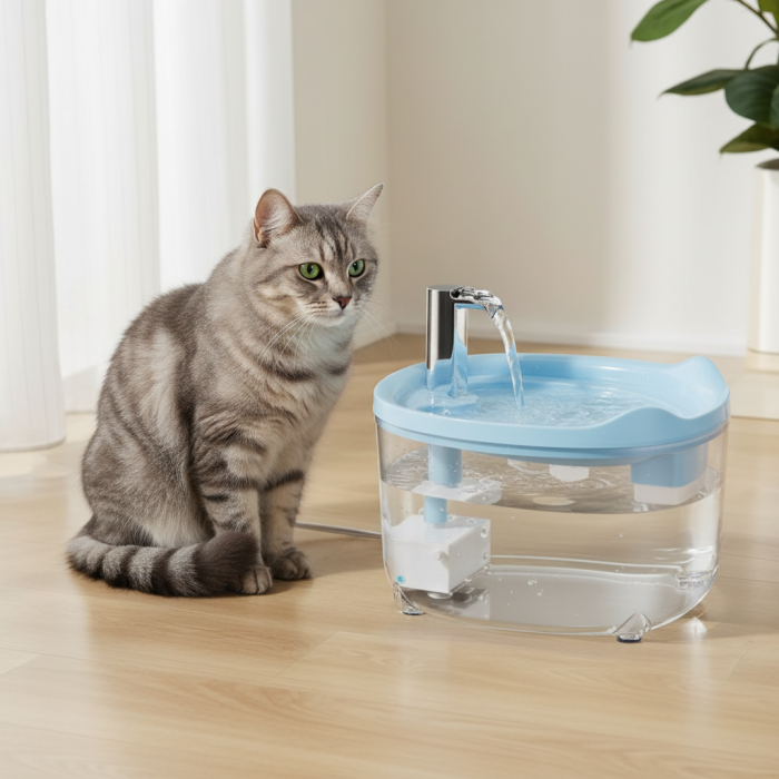 Користь для здоров'я. Велика ємність фонтану дозволяє вам не турбуватися про доливання води щодня. Безпечна конструкція забезпечує комфорт під час пиття, а безшумна робота не порушить ваш спокій.
