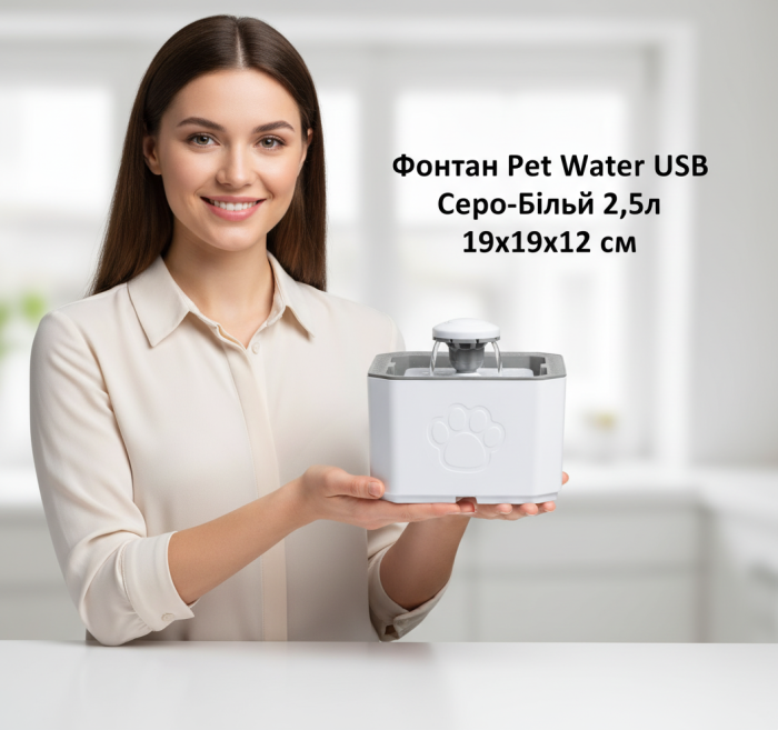 Фонтан Pet Water USB Серо-Белий 2,5л 19x19x12 см.