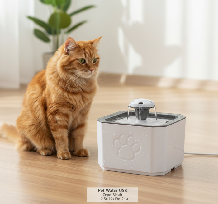 Використання товару Фонтана Pet Water USB Серо-Білого 2,5л 19x19x12 см.