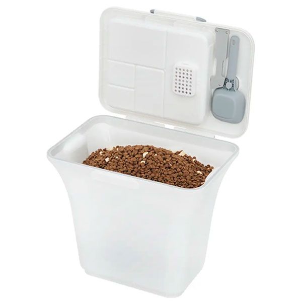 Контейнер для корму 362634см,15л на 7-9 кг.Під прозору кришечку можна скласти смаколики, або антигельмінтні препарати, або піпетки з краплями, щоб завжди іх бачив і не забув вчасно зробити обробкуПеред використанням контейнера, рекомендується його попередньо помити. Користуватися контейнером можна тільки тоді, коли він повністю висохне.Пересипте сухий корм у контейнер і щільно закрийте кришку.Контейнер краще зберігати в сухому темному місці, де улюбленець не зможе його перевернути.