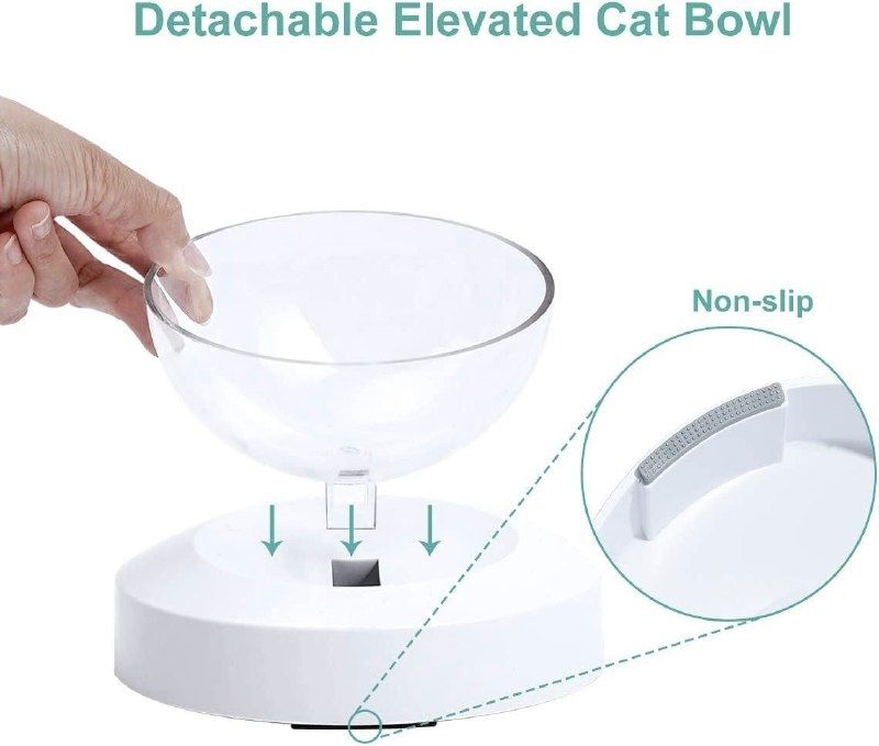 Регульована конструкція (0 або 20 ) : Миска ELSPETH cat з нахилом на 0 або 20 градусів для кішок, плоскомордих кішок, маленьких собак для захисту шийного відділу хребта вихованця.Піднята основа: зручна конструкція піднятої основи знижує тиск на шийний відділ хребта вашого вихованця. Вихованець легше ковтає їжу і воду, що сприяє більш здоровому травленню.Прозорий і протиковзкий ДИЗАЙН: прозорі миски ELSPET дозволяють контролювати кількість їжі. Нековзна вставка на дні запобігає ковзанню миски під час їжі вихованця. Простий сучасний дизайн відмінно виглядає в інтерєрі вашого будинку.Міцна і проста в догляді: миска ELSPET виготовлена з екологічно чистого пластику. За прозорою знімною мискою дуже легко доглядати. Використовуйте для чищення кухонний рушник або губку або промийте її в чистій воді.