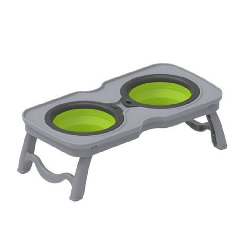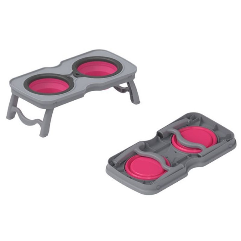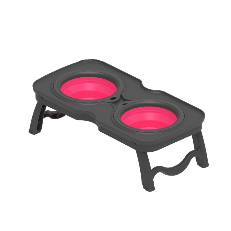 Розкладний бар з мисками для собак.Колір може відрізнятися від кольору на фото, перед замовленням уточнюйте колір.Миски складні силіконові, легко мити.На ніжках бару антиковзаюче покриття.