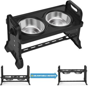 Регулюється на 4 висоти: доступні 4 різних висоти: 17,5 см 14,5 см 11 см 7,9 см.ви можете регулювати висоту відповідно до розміру вашого вихованця. Підходить для маленьких, середніх собак і кішок.2. Високоякісний матеріал: матеріал чаші з нержавіючої сталі, стійкі до іржі, довговічні. Подвійні миски можуть задовольнити потребу як в їжі, так і в воді. Доповнена зручною ручкою, підставка для чаш легко переміщається. Матеріал підставки-екологічний пластик.3. Не ковзає: протиковзкі вставки в нижній частині запобігають перевертання і ковзання стійки, коли ваші вихованці їдять.4. Завдяки регульованій підставці ці миски сприяють ефективному травленню і допомагають вашим улюбленим собакам або кішкам зменшити навантаження на шию і суглоби, викликану тривалим прийомом їжі з опущеною головою.5. Легко миється: миски можна мити в посудомийній машині або чистою водою.
