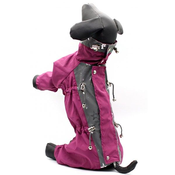 Верх-плащівка. Підкладка-підкладковий шовк. По обєму комбінезону і по шиї затягування. По спинці світловідбивна тканина.РозмірПородаДовжина спини, смОкружність грудей, смВага тварини, кгXXSЙоркширський терєр, той-терєр, чихуа-хуа, цуценята18-22 см25-31 смдо 1,4XSЙоркширський терєр, той-терєр, чихуа-хуа23-25 см32-40 смдо 2,2SЙоркширський терєр, той-терєр, чихуа-хуа26-29 см40-45 смдо 3S1Йоркширський терєр, пекінес (маленький), безпородні30-33 см40-46 смдо 4,5S2Пінчер, йоркширський терєр, пекінес, цуценята26-29 см46-57 смдо 4,5S3Мопс (маленький), ши-тцу, пекінес30-33 см46-57 смдо 6МТакса міні, чубата собачка, пудель, ши-тцу, фокс-терєр, безпородні33-37 см41-53 смдо 7М1Мопс (середній)31-37 см51-68 смдо 10LТакса (середня), спанієль дрібний38-43 см47-58 смдо 9L1Французький бульдог, мопс великий, спанієль середній38-43 см59-70 смдо 12XL1Боксер, спанієль, стаффордширський терєр50 см50-58 смдо 25XXLСтаффордширський терєр, такса54 см52-63 смдо 35XXL1Стаффордширський терєр50-55 см75-95 смдо 50XXXLРетривер, доберман, лабрадор, вівчарка, ротвейлер56-69 см85-105 смдо 60