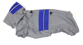 Комбінезон із водонепроникної плащової тканини (дюспо-доббі). Підклад-підкладковий шовк. На блискавці. Хомут відстібається. Регулювання за обсягами. Світовідбивна стрічка як декор.РозмірПородаДовжина спини, смОкружність грудей, смВага тварини, кгXXSЙоркширський терєр, той-терєр, чихуа-хуа, цуценята18-22 см25-31 смдо 1,4XSЙоркширський терєр, той-терєр, чихуа-хуа23-25 см32-40 смдо 2,2SЙоркширський терєр, той-терєр, чихуа-хуа26-29 см40-45 смдо 3S1Йоркширський терєр, пекінес (маленький), безпородні30-33 см40-46 смдо 4,5S2Пінчер, йоркширський терєр, пекінес, цуценята26-29 см46-57 смдо 4,5S3Мопс (маленький), ши-тцу, пекінес30-33 см46-57 смдо 6МТакса міні, чубата собачка, пудель, ши-тцу, фокс-терєр, безпородні33-37 см41-53 смдо 7М1Мопс (середній)31-37 см51-68 смдо 10LТакса (середня), спанієль дрібний38-43 см47-58 смдо 9L1Французький бульдог, мопс великий, спанієль середній38-43 см59-70 смдо 12XL1Боксер, спанієль, стаффордширський терєр50 см50-58 смдо 25XXLСтаффордширський терєр, такса54 см52-63 смдо 35XXL1Стаффордширський терєр50-55 см75-95 смдо 50XXXLРетривер, доберман, лабрадор, вівчарка, ротвейлер56-69 см85-105 смдо 60