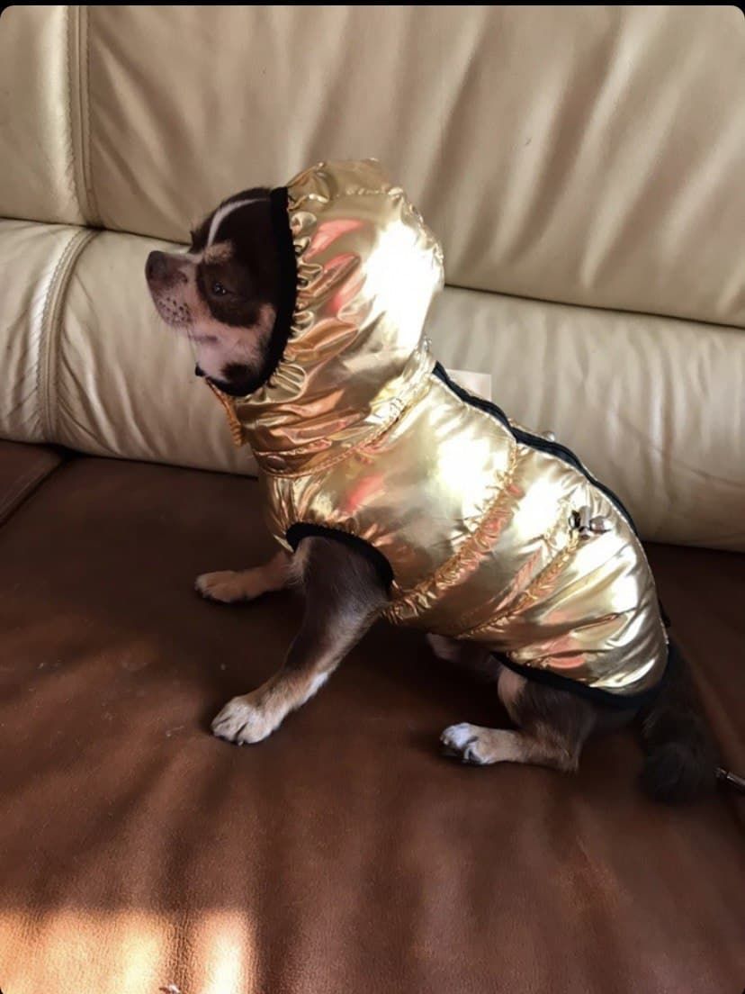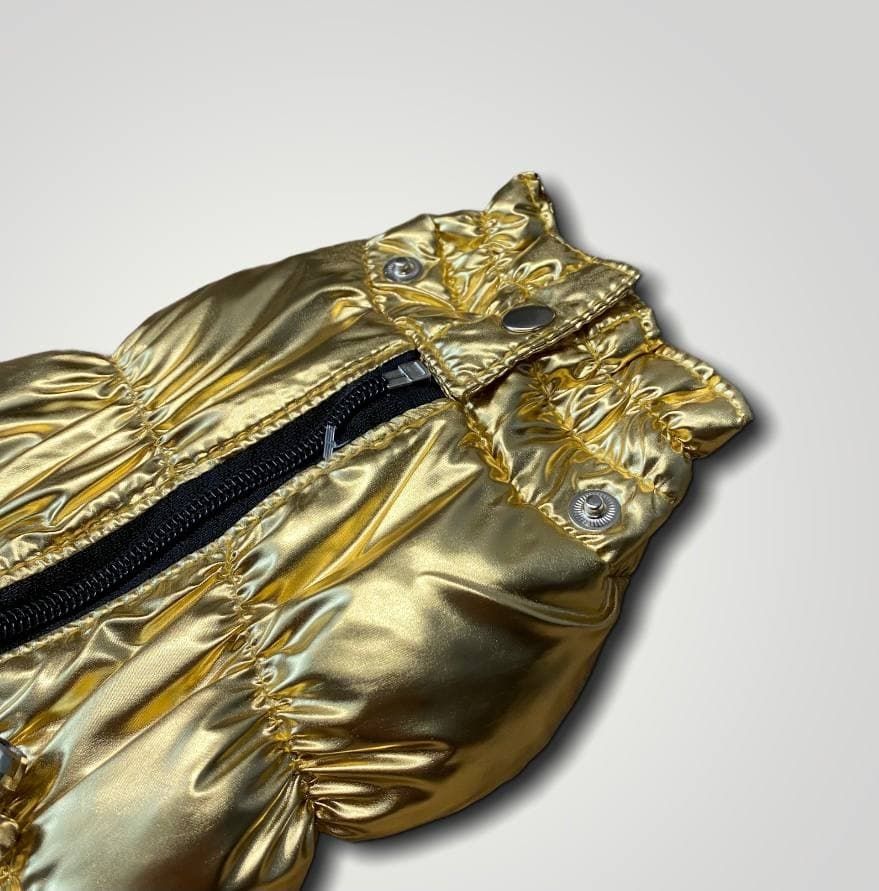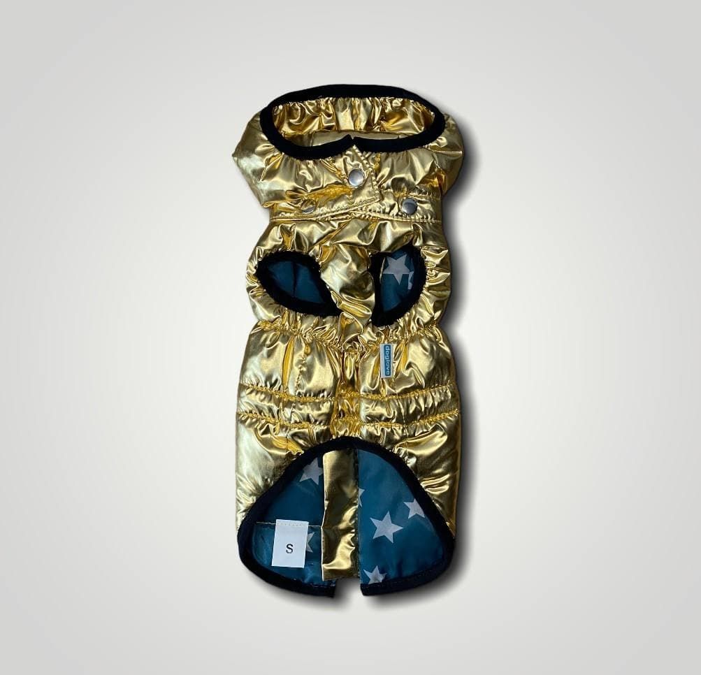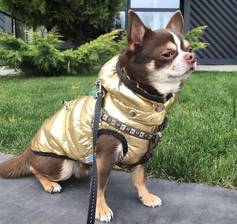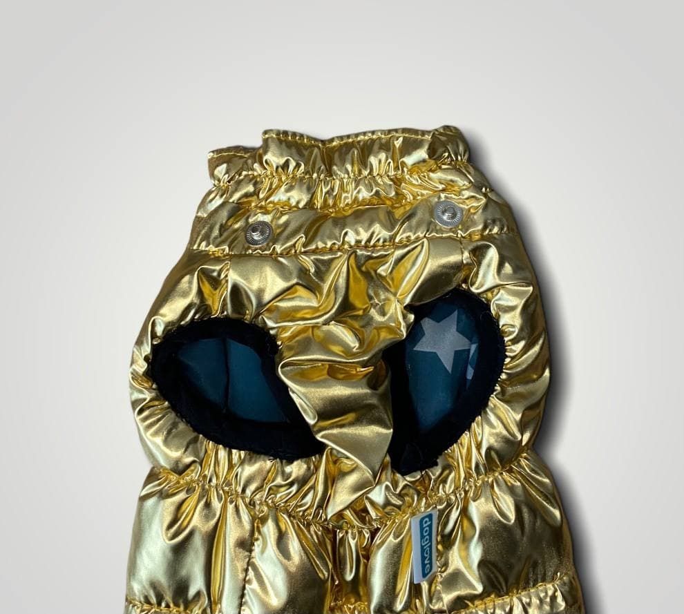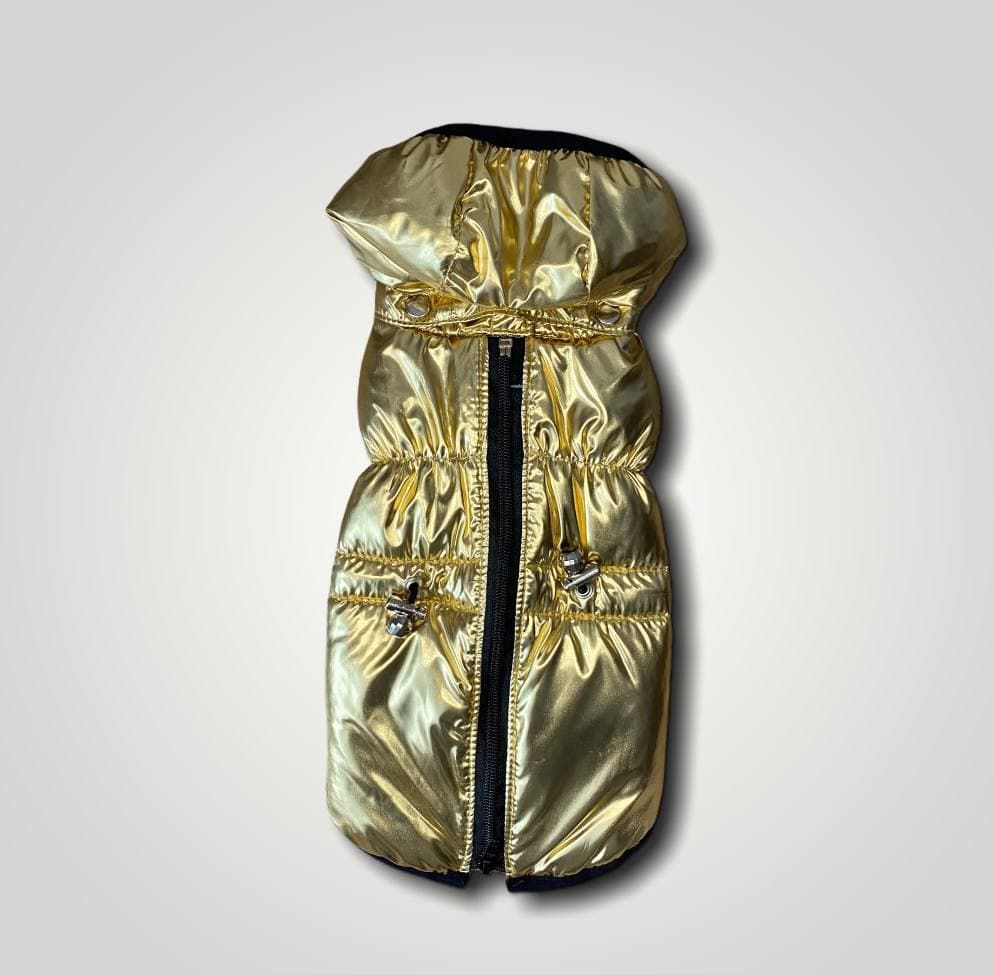 Демісезонний жилет кольору золото.Жилет для собак маленьких, середніх і великих порід.Наповнювач силікон.Зручна блискавка по спинці.Знімний капюшон.