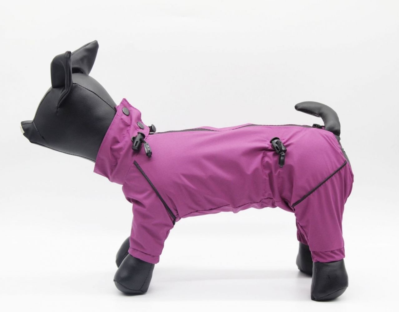 Комбінезон на тонкій підкладці. На спинці водонепроникна блискавка. Матеріал верху плащівка. Підклад - підкладковий шовк. Між верхом і підкладом прокладено непроникну мембрану для більш якісного захисту одягу від вологи. По краю рукава та по ніжках вшито декоративний кант. По коміру і талії для кращої посадки зроблено утяжку для кращої посадки.