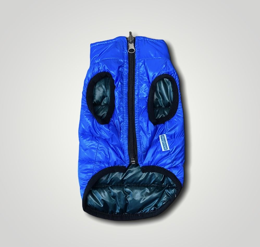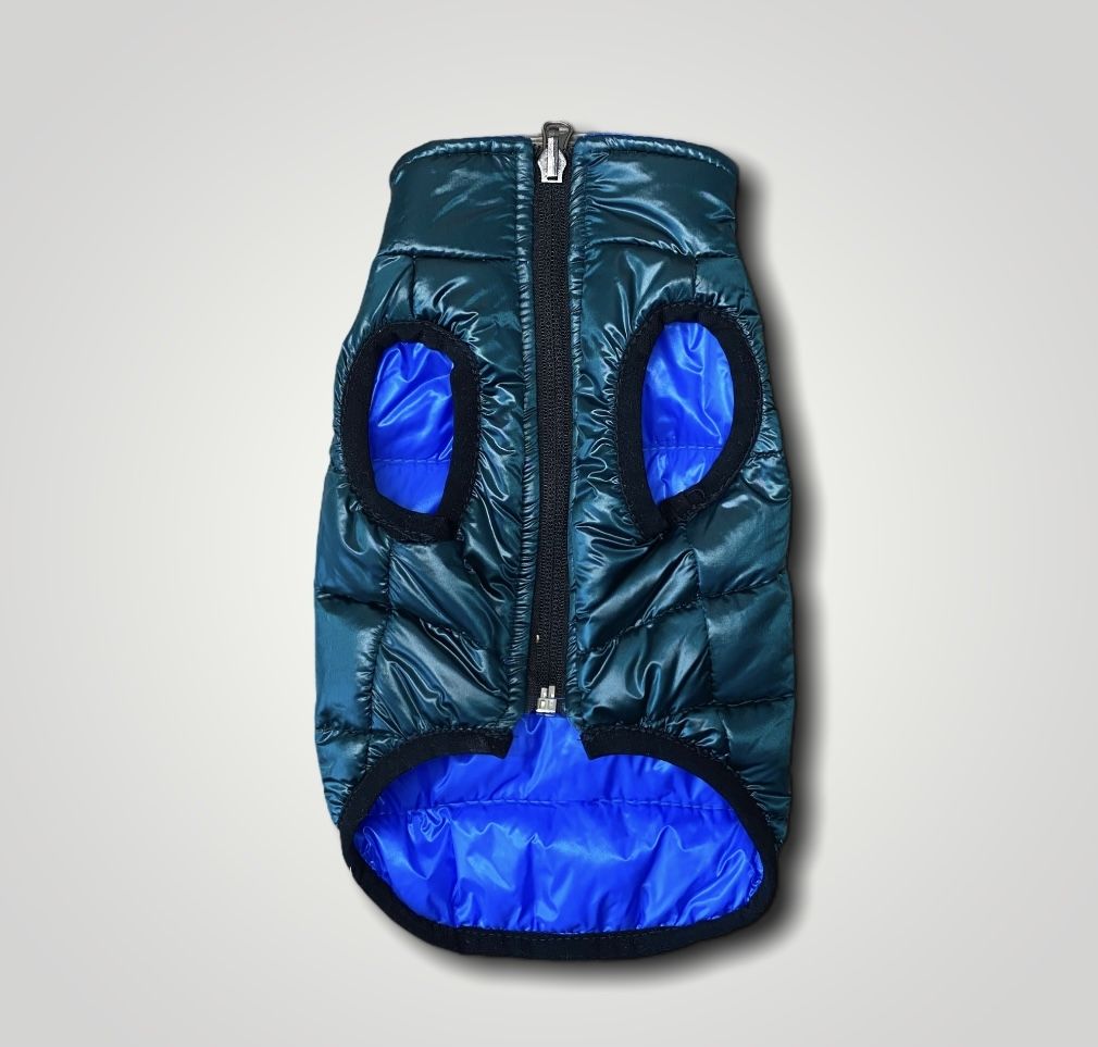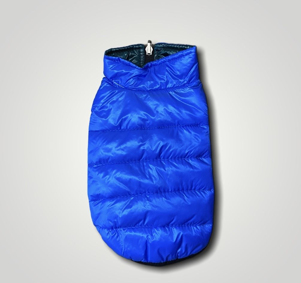 Двосторонній жилет з наповнювачем силікон на сезон осінь-весна.Замок на животі.Отвори під лапки оброблені еластичною гумою, що запобігає передавлювання.Відмінний демісезонний варіант для щоденних прогулянок.