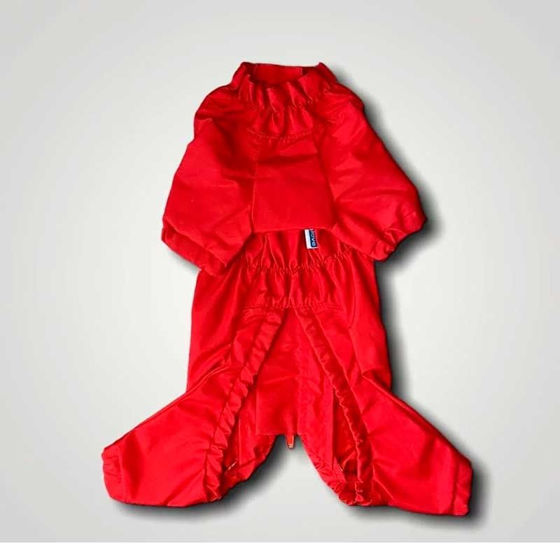 Дощовик полегшена одяг для домашніх тварин, яка закриває всі 4 лапи.Корисний в мокру погоду.Зроблений тонкої плащової тканини яка не викочує шерсть.Світловідбиваючі елементи роблять собаку помітною на дорозі в будь-який час доби