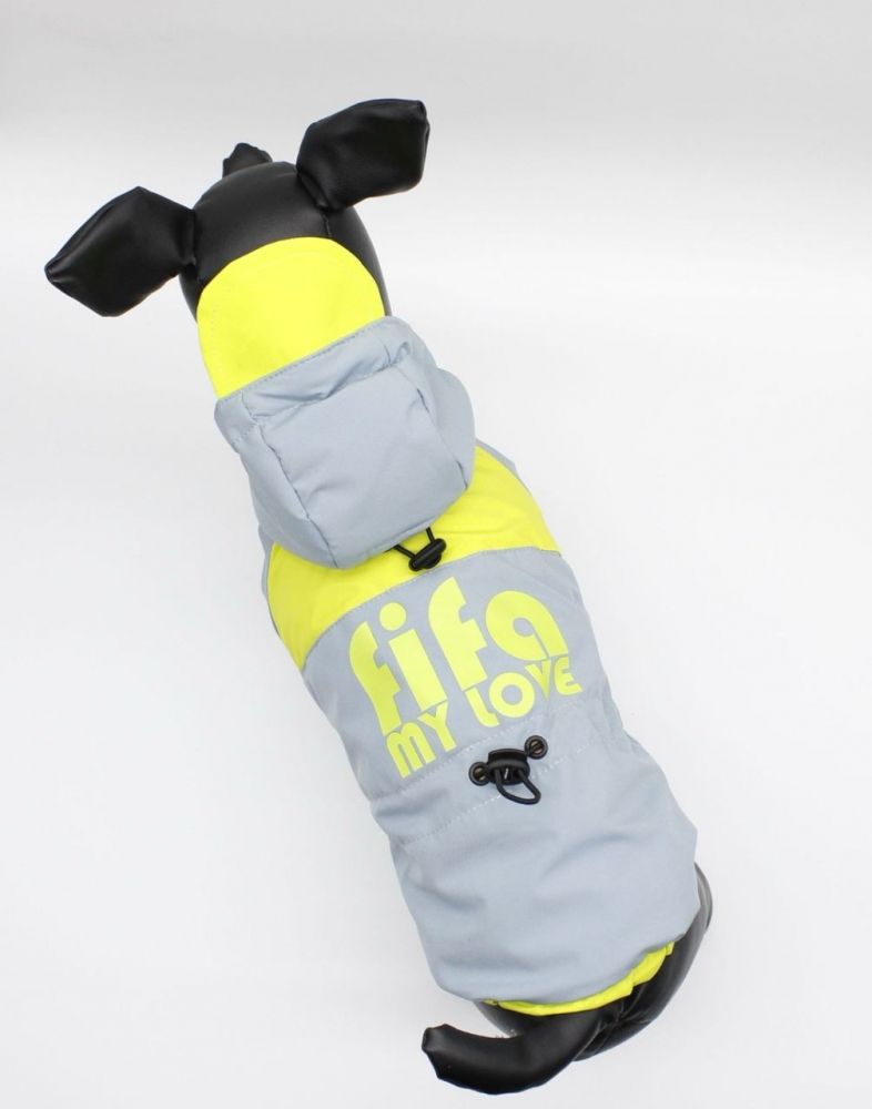 Куртка Орфей, хлопчик. Куртка з капюшоном блакитний з неоном.Матеріал плащівка. Підклад - підкладкове хутро. На спинці декоративна наклейка. На талії і капюшоні для кращої посадки зроблені утяжки.