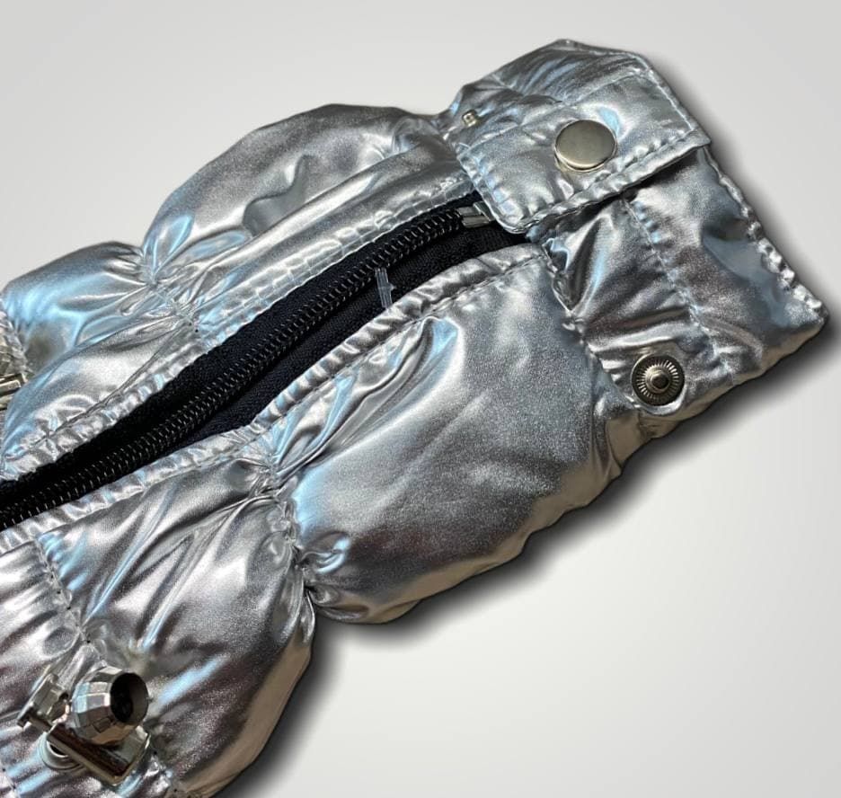 Демісезонний жилет кольору Срібло.Жилет для собак маленьких, середніх і великих порід.Наповнювач силікон.Зручна блискавка по спинці.Знімний капюшон.