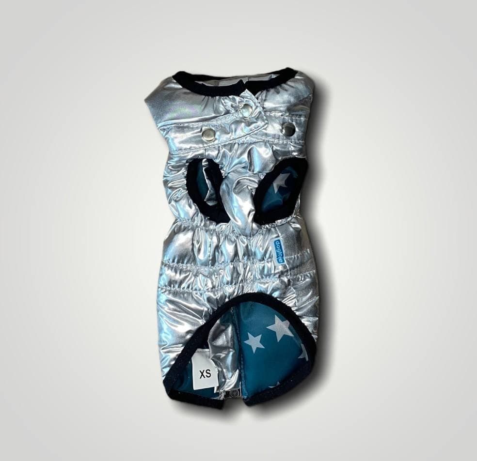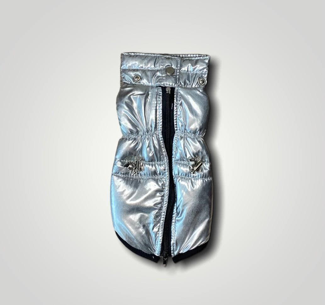 Демісезонний жилет кольору Срібло.Жилет для собак маленьких, середніх і великих порід.Наповнювач силікон.Зручна блискавка по спинці.Знімний капюшон.