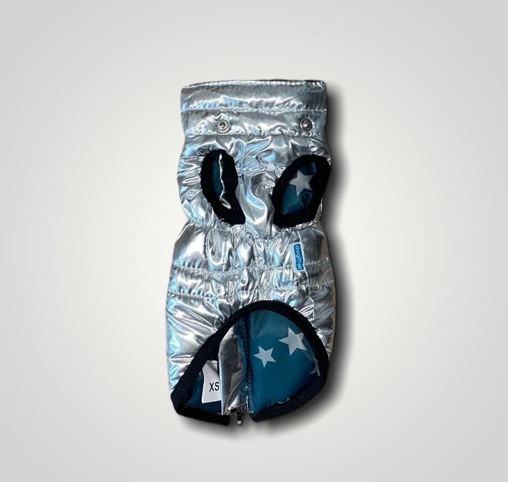 Демісезонний жилет кольору Срібло.Жилет для собак маленьких, середніх і великих порід.Наповнювач силікон.Зручна блискавка по спинці.Знімний капюшон.