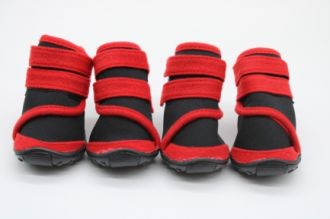 Набір з чотирьох водонепроникних неопренових черевиків для собак, прикрашених чорним кріпленням та міцною гумовою підошвою.Ці чоботи для собак легко одягнути завдяки широкому передньому отвору та застібці на липучці на корпусі взуття. Ще два ремені на липучках обертаються навколо ноги, щоб надійно тримати кожне взуття на нозі вашого собакиМякий та зручний, але все ще міцнийМожна безпосередньо промити водоюНеопренова тканина з часом набуде форми лапи собаки (тому спочатку вони щільно прилягатимуть). допомога у відновленні травмЗберігайте подушечки лап сухимиЗахищає чутливі подушечки лапЗапобігає травмуванню лап при ходьбіПротиковзка підошва для запобігання ковзанню лапПісля операції, щоб собака не злизувала швиЗахист від алергічних подразниківПрекрасно підходить у бруді, дощі або снігу, щоб зберегти лапи в теплі та сухості