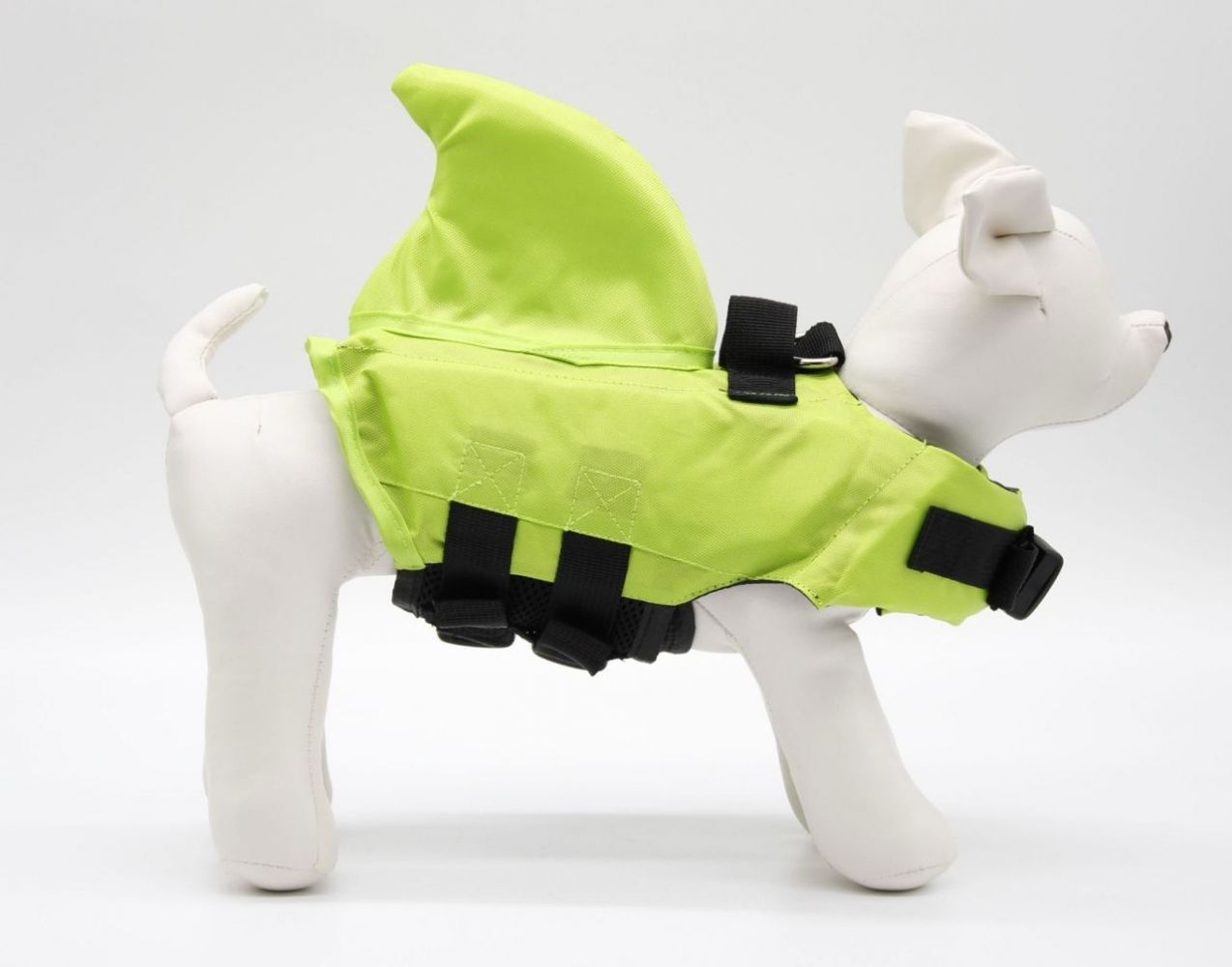 Стильний рятувальний жилет для плавання собак зі смішним плавником акули.Плавальний жилет забезпечений зручною ручкою для перенесення вашого улюбленця. Модель виготовлена з ультратонкої та легкої тканини. Жилет легко сушиться і не збільшує вагу тварини у воді. Зручні застібки не сковують рух вашого улюбленця. На спині жилета розташований плавник, що збільшує стійкість тварини під час плавання і дає змогу собаці плавати з більшим задоволенням, навіть собаки, які не люблять воду, почуватимуться комфортно.Дизайн акулячого плавника розроблений для зручності плавання і дає залишатися собаці в полі зору.