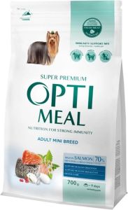 Optimeal Повний раціональний сухий корм для дорослих собак мініатюрних порід з високим вмістом лосося Вага: 0.7 кг