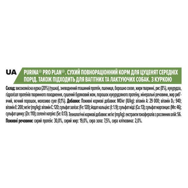 PRO PLAN Puppy Medium сухий корм для цуценят середніх порід з куркою 3 кг
