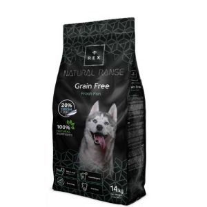 Rex Natural range Grain Free Fresh Fish сухий беззерновой корм для собак з рибоюПовнораціонний беззерновой сухий корм для дорослих собак які потребують делікатному харчуванні, корм є безглютеновим, що дозволить вихованцеві з алергією на глютен поліпшити якість життя на більш тривалий період.Переваги кормупокращує стан шкіри і шерстіпідтримує здоровя травної системибеззерновойкорм допомагає піклуватися про здоровя ротової порожниниСкладСвіжа риба (20), зневоднена картопля, зневоднений рибний білок, зелений горошок, гороховий білок, курячий жир, дріжджі, ріжкове дерево, бурякова мякоть, гідролізат риби, зневоднене яблуко, мінеральні речовини, зневоднена морква, цикорій (джерело ФОС), юка Шідігера.Технологічні добавки: Антиоксиданти: екстракти токоферолу з рослинних олій.