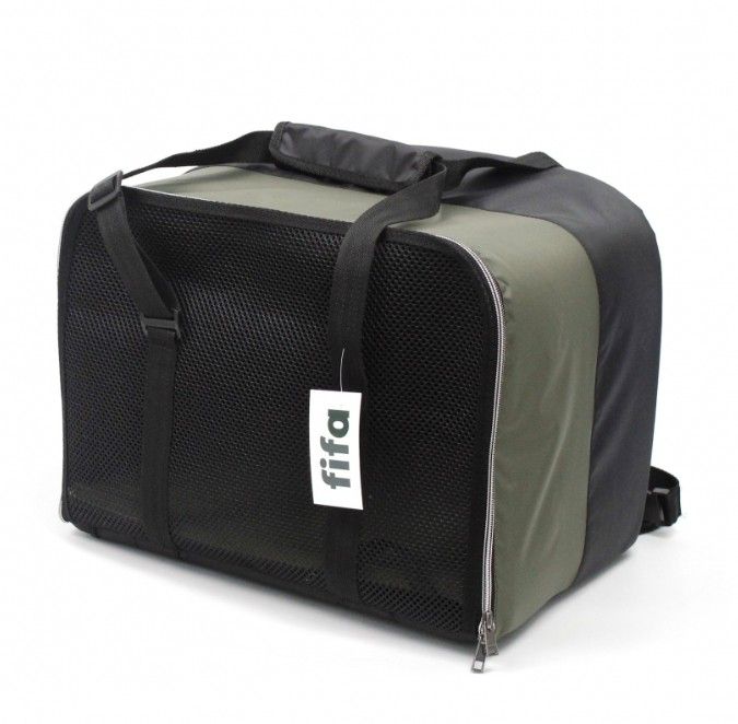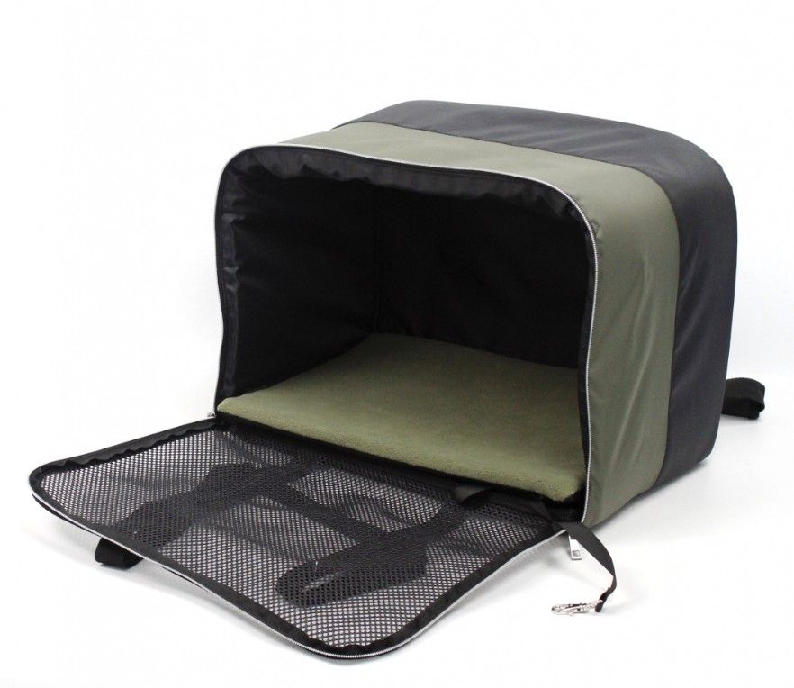 Автосумка з тканини плащівка для малих порід собак і для котів. Має додаткові ремені для кріплення до сидіння. Одна сторона сумки повністю з сітки. Поролоновий наповнювач, килимок виймається