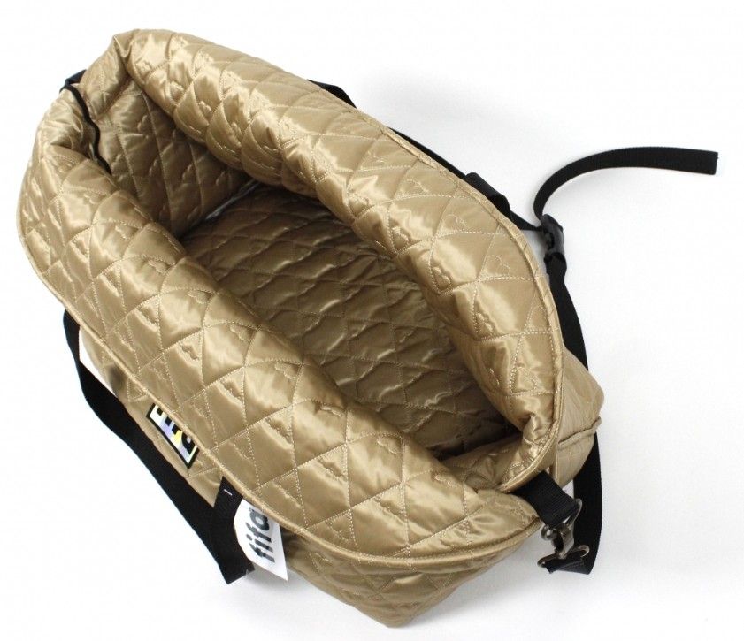 Зємна ручка виконана з ремінної стрічки. В середині сумки є карабін на резинці для кріплення ошийника.Ремінна стрічка прікриплена до сумки карабінами, якщо потрібно можно її зняти, або носити через плече, або для крепежа в авто з пластиковою застібкою. Дно мяке.