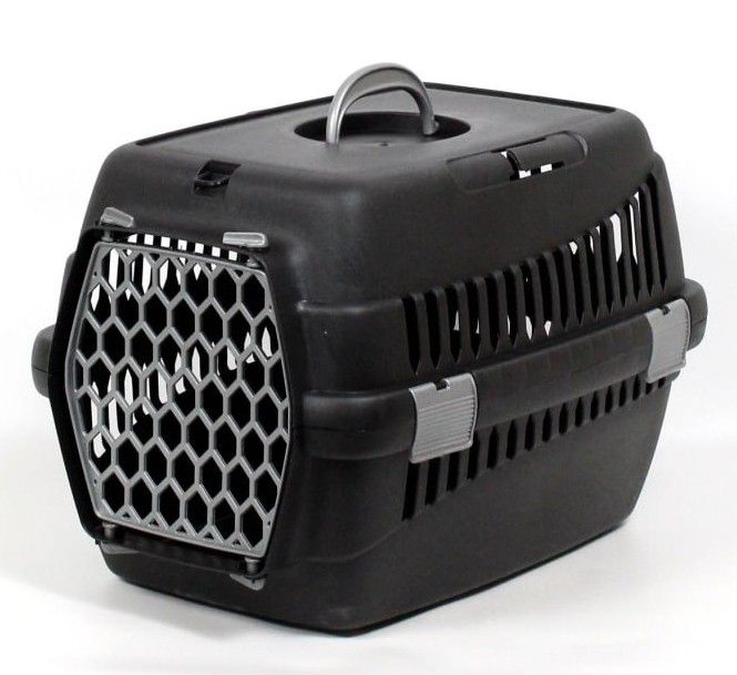 Переноска для тварин чорна пластик сірі двері 49х35х32 см до 5 кг